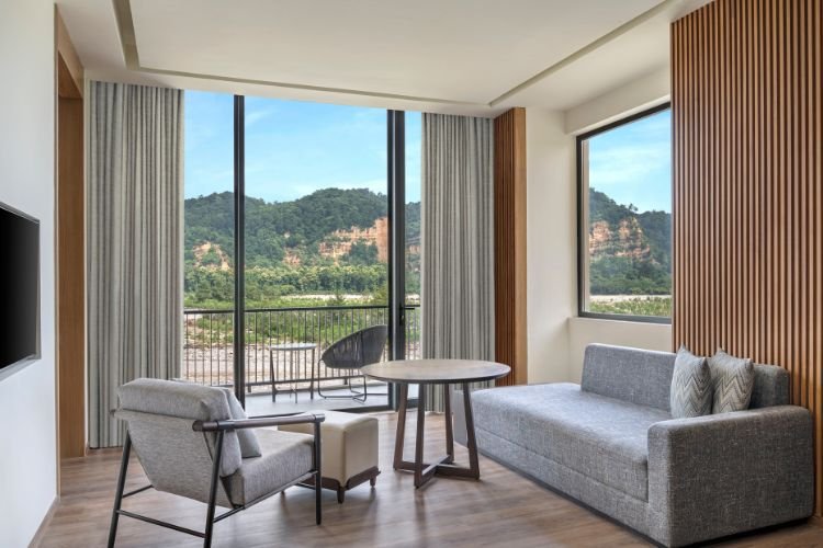 The resort features 99 elegantly designed rooms and suites that blend modern comfort with refined luxury. Many accommodations offer stunning views of the Kosi River and lush forest surroundings, allowing guests to experience nature without compromising on comfort and style.