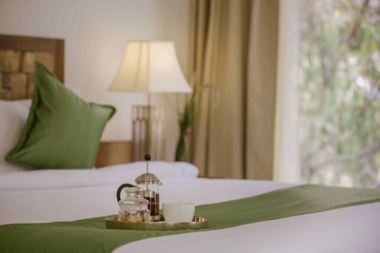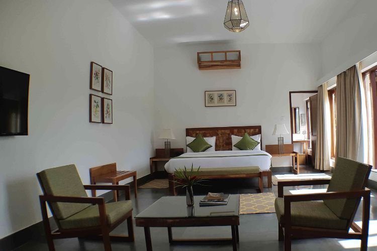 The resort features elegantly designed villas and suites that combine modern luxury with natural charm. Each accommodation is thoughtfully curated with premium amenities and offers stunning views of greenery, creating a relaxing space where guests can unwind and reconnect with nature.